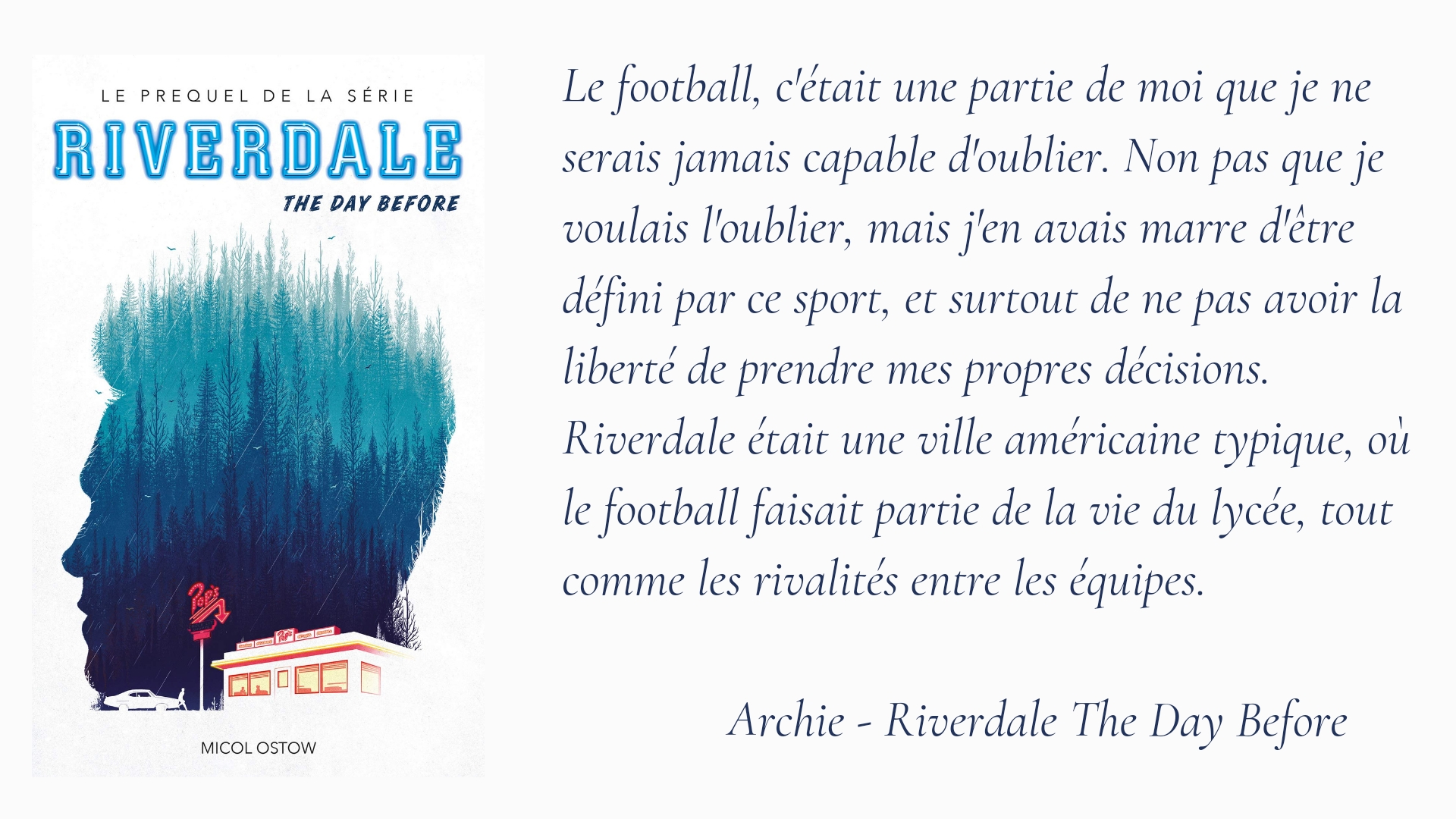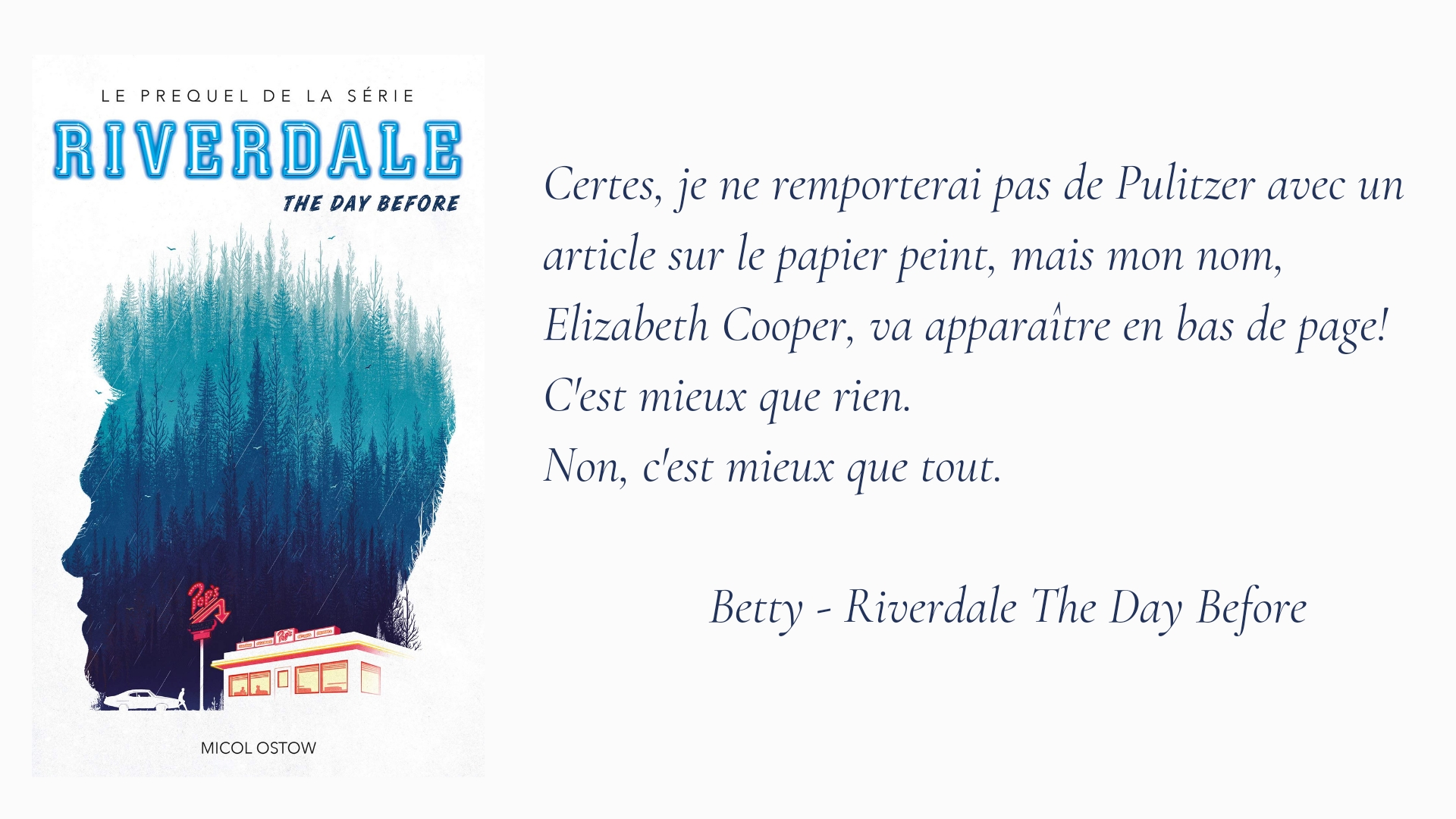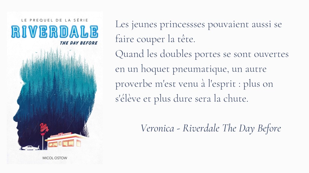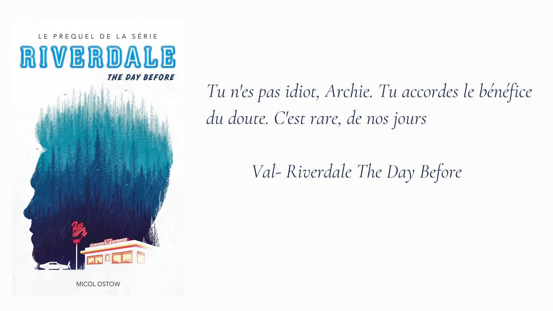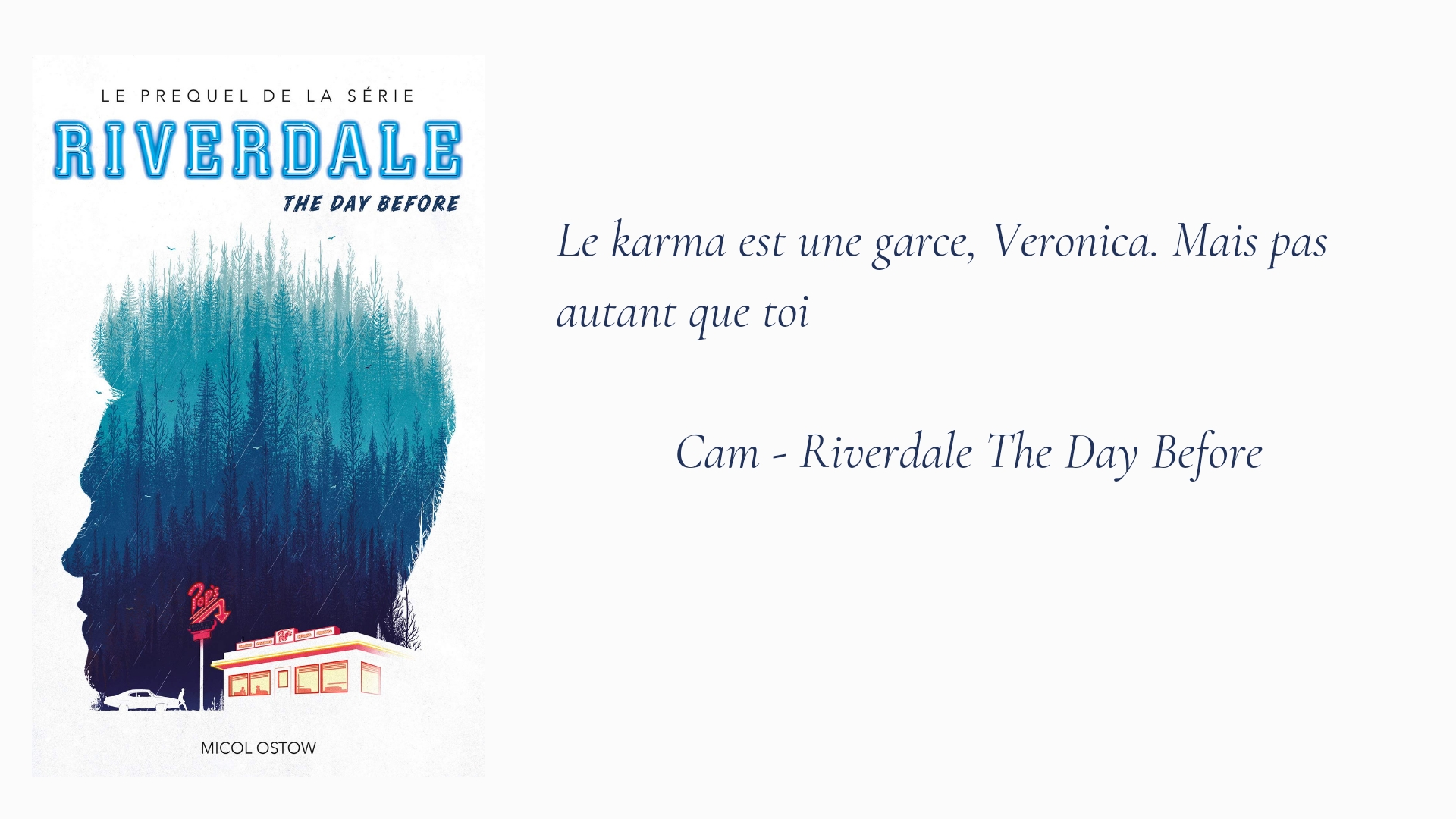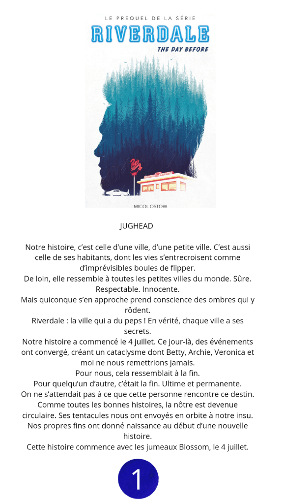 Il faudrait habiter dans une grotte pour ne pas avoir entendu, ni vu un ou plusieurs épisodes de la série Riverdale. Il est d’ailleurs préférable d’avoir au moins vu la 1ere saison avant de lire le livre et ma chronique, sinon vous allez vous spoiler.